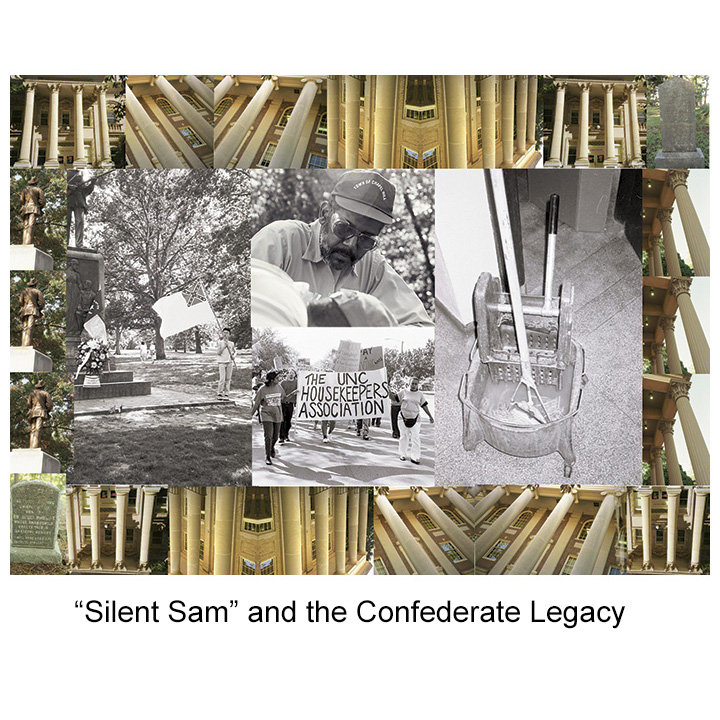 I soon found myself immersed me in the history of racial division that had shaped this seemingly idyllic college town. Jim Lee, a professor at UNC, teamed up with me to create an audio track to accompany the photos. Jim had been around decades earlier when the cafeteria workers walked out. The legal case also involved precedents from Black struggles in the 30’s and the oddities of history. Black slaves had built many of the buildings on campus – named for “heroes” of the Confederacy – and the ubiquitous stone walls along the campus grounds.